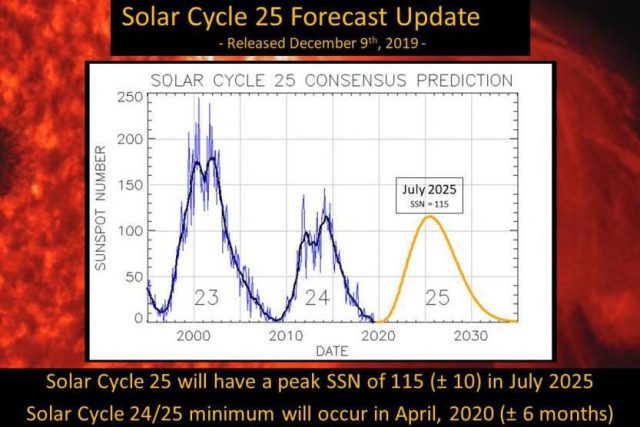 Abbildung 16: Gemeinsame Vorhersage für den Sonnenfleckenzyklus 25 von NOAA und NASA vom 9. Dezember 2019. Ähnliche Ergebnisse wie in Abb. 15. Bildquelle