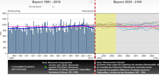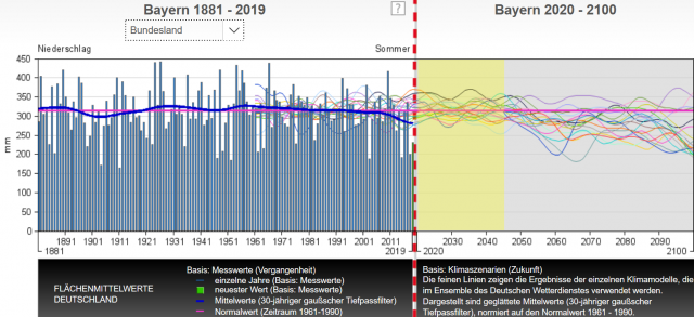Interessant ist in dem Dokument die Aussage zur (simulierten) zukünftigen Trockenheit für Nordbayern, dass es dort keine Änderungen geben soll: [4] Beeinträchtigung wasserabhängiger Biotope durch Trockenheit