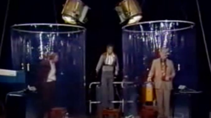 Auf einer Bühne waren zwei große Zylinder mit den ungefähren Maßen 2 x 3 m aus durchsichtiger Plastikfolie aufgebaut. In jedem dieser Zylinder befand sich eine Testperson, die ein Thermometer beobachtete, aber nur in einem Zylinder wurde CO2 aus mehreren großen CO2-Flaschen sehr rasch von unten eingeleitet.