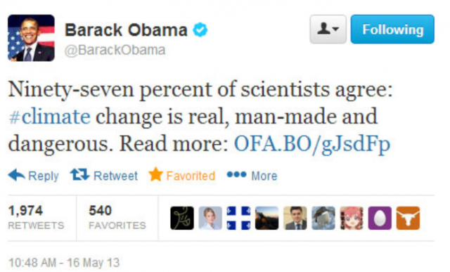 Diese Studie ist die gängigste, als 97 % Konsens-Studie bezeichnete und dazu auch noch von Obama höchstpersönlich „geadelt“. Auch diese Studie ermittelte – also bestätigte – die 97 % Zustimmung.