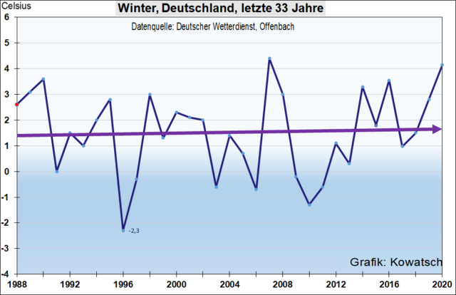Die drei Wintermonate in Deutschland seit 1988: keine Erwärmung.