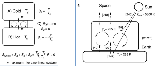 So stellen Ozawa et al. (2003) in einer Veröffentlichung über das Prinzip der maximalen Entropie im globalen Klimasystem ein Berechnungsschema für die Entropie vor und wenden es auf die Erde an: