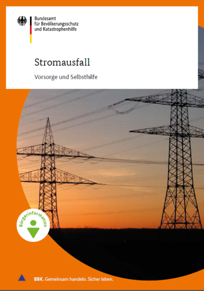 Beim Bundesamt für Bevölkerungsschutz und Katastrophenhilfe (BBK) ist als wesentlichste Information der Bevölkerung eine Broschüre unter dem Titel „Stromausfall – Vorsorge und Selbsthilfe“ /2/ erhältlich. Ihr in großen Lettern gedruckter Text enhält bemerkenswerte Empfehlungen von hohem Grad der Allgemeingültigkeit, wie: