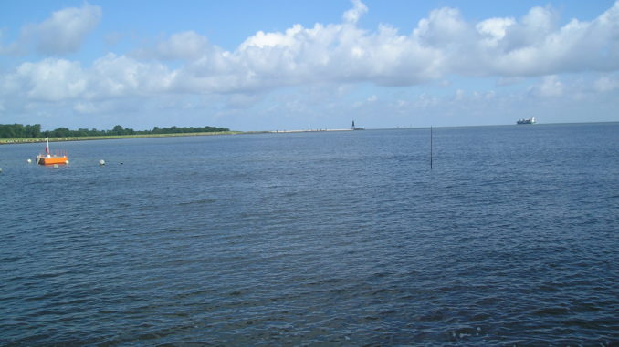 Das ist noch die Elbe vor Cuxhaven mit der Kugelbake. Die Nordsee beginnt erst weiter draußen, hinter Neuwerk.