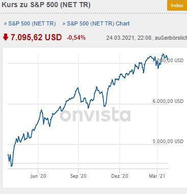[Der S&P 500 ist ein Aktienindex, der die Aktien von 500 der größten börsennotierten US-amerikanischen Unternehmen umfasst. Der S&P 500 ist nach der Marktkapitalisierung gewichtet und gehört zu den meistbeachteten Aktienindizes der Welt – Wiki]