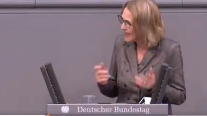 Die Vorsitzende des Bundestags-Umweltausschusses, die Grüne Sylvia Kotting-Uhl, lässt die Katze aus dem Sack. Sie ruft den AfD-Abgeordneten zu: