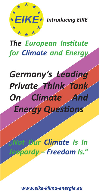 EIKE (European Institute for Climate and Energy) is an association of a growing number of nature, humanities and economists, engineers, journalists and politicians who regard the assertion of climate change as solely „man-made“ as not scientifically rigorous and neglects known solar and other natural influences. EIKE, therefore, opposes „climate policy“ which is based solely on GHG reduction because of its negative impacts on the economy and the wider population and the consequent tax burden it creates on people, especially those in energy poverty. Within the framework of its tasks, EIKE offers members and partners a platform for the discussion and publication of scientific findings. EIKE produces appraisals at national and international levels, organizes symposia and congresses. In addition, EIKE participates in the education and education of the population and supports the establishment of political initiatives by providing scientific expertise. If you are interested, please contact us.