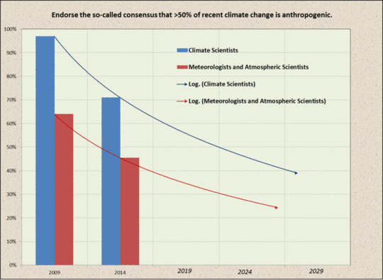 In den meisten, wenn nicht sogar in allen AGW-Katastrophe-Studien wird das RCP 8.5-Szenario (oder ein Äquivalent) als das „Business-as-Usual-Szenario“ bemüht. Ein Beispiel aus jüngerer Zeit steht hier. In der begutachteten Studie heißt es: „Die Antarktis hat das Potential, mehr als einen Meter zum Anstieg des Meeresspiegels bis zum Jahr 2100 beizutragen“. Journalisten übersetzten dies zu „Es wird erwartet, dass die Antarktischen Eisschilde den Anstieg des Meeresspiegels bis zum Jahr 2100 auf zwei Meter verdoppeln werden, falls die Kohlenstoff-Emissionen nicht reduziert werden“.